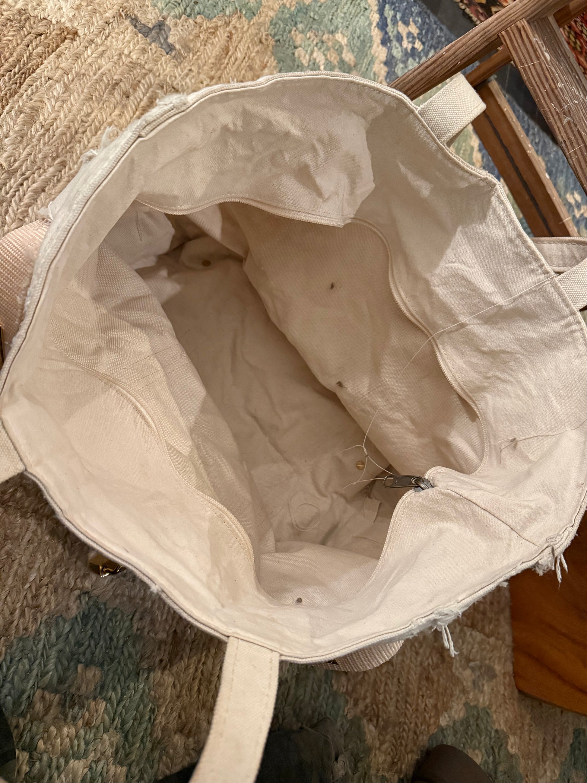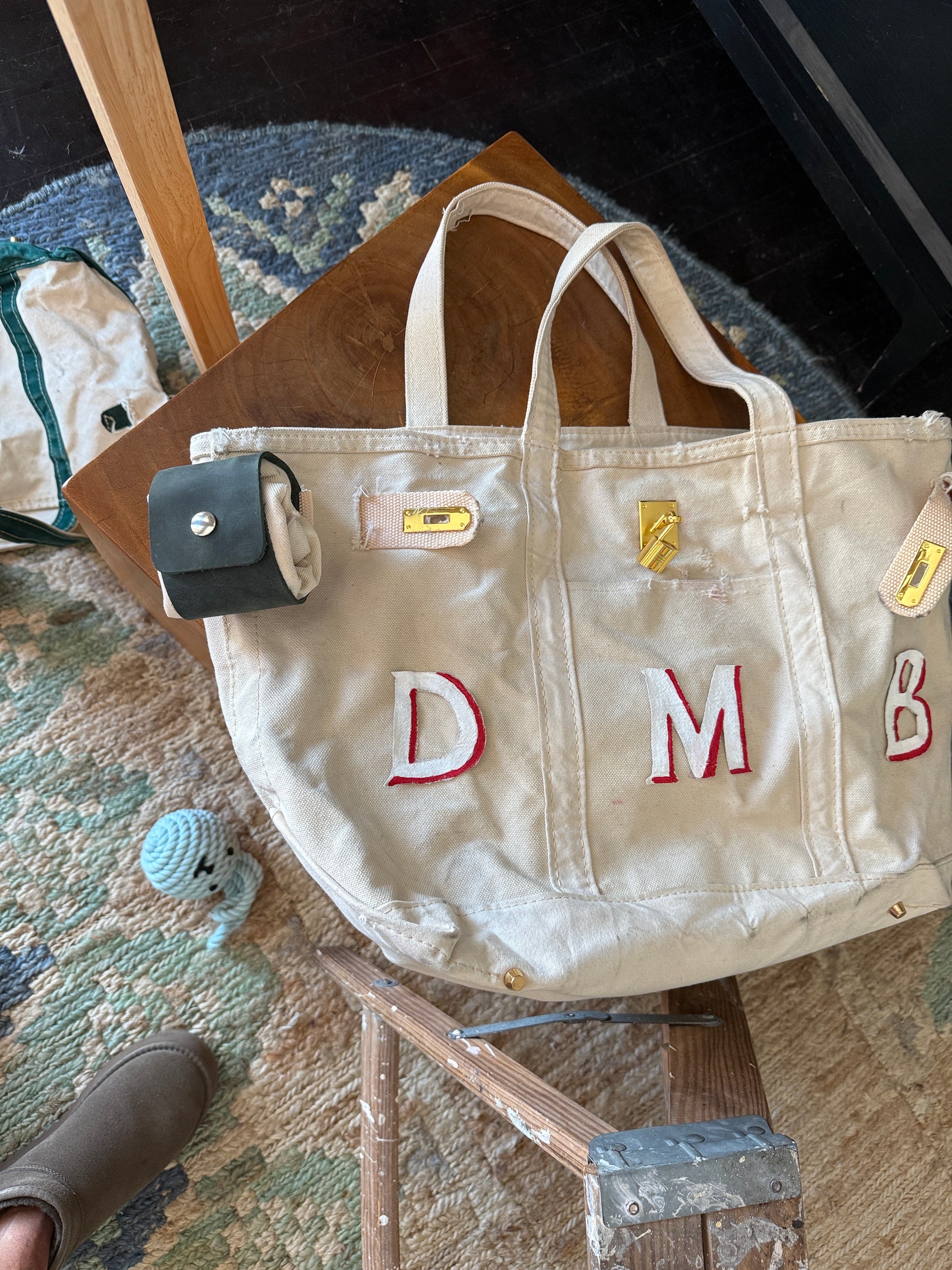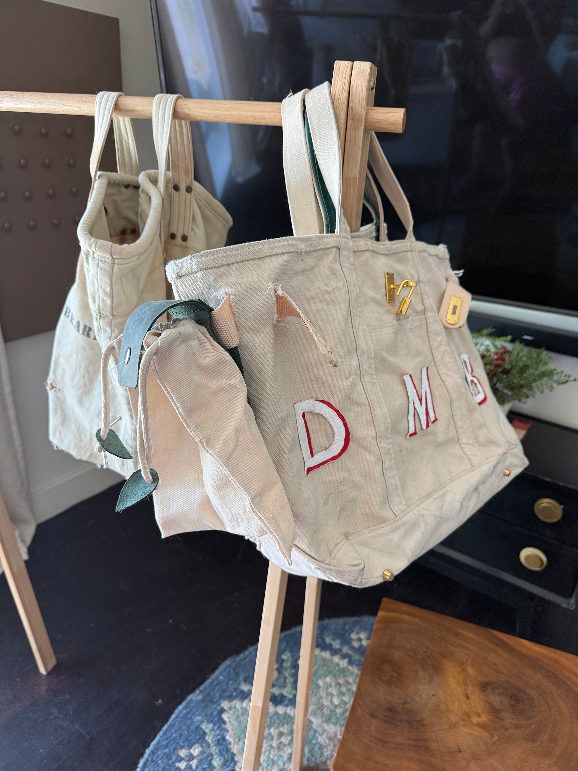An L.L. Bean boat & tote sourced in New England, washed & tousled thru the salt waters of Cape Cod until perfectly soft & rigged in the spirit of the viral, impossible 2 get $1,600 bag - but the latest iteration. PERSONALIZED.